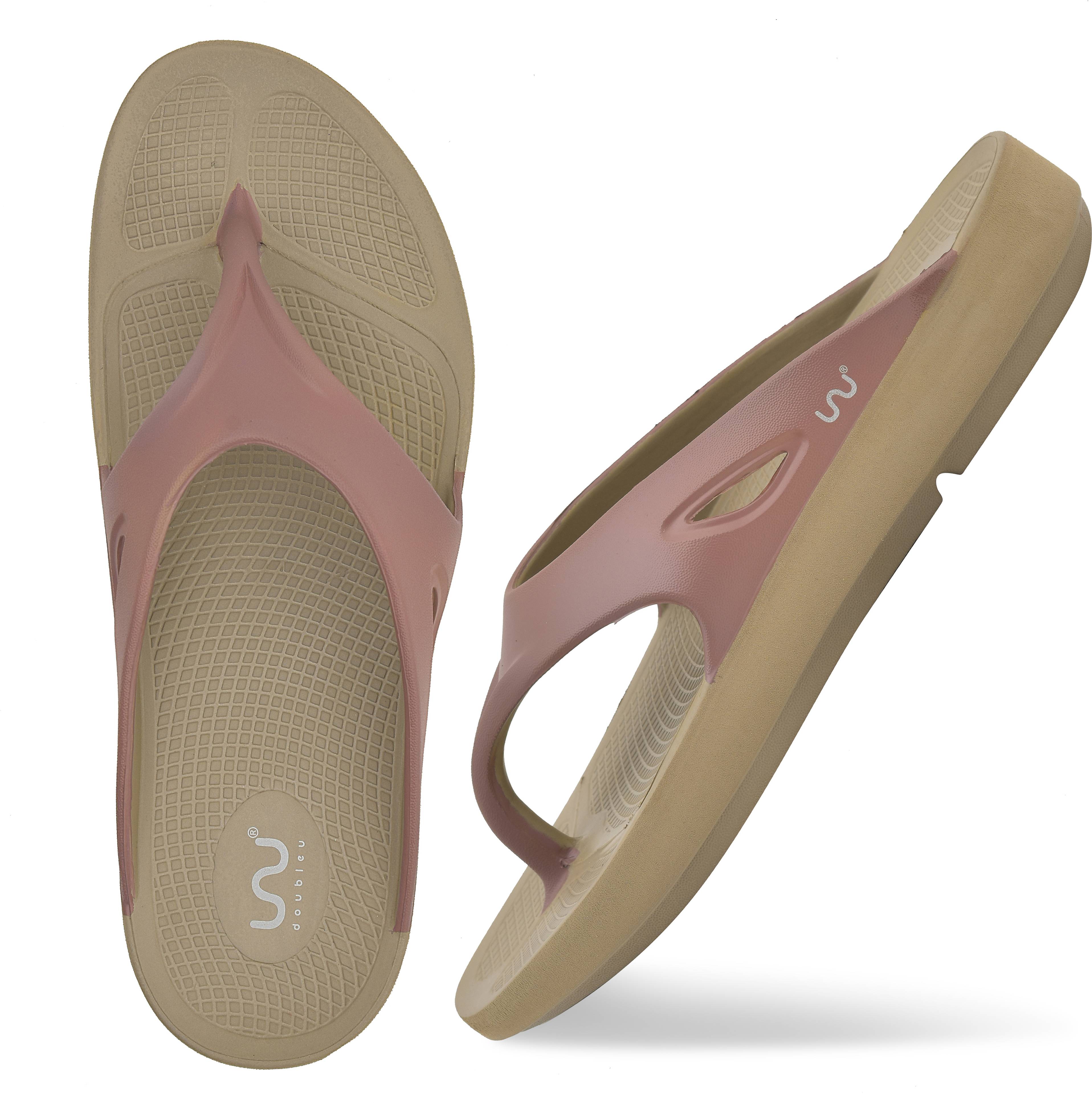 Doubleu Men Men Clasic V Shape Khaki+Tan Flip Flops (Pink , 10)
