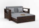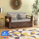 Douceur Furnitures Solid Sheesham Wood For Living Room / Hotel. 2 Seater Single Solid Wood Pull Out Sofa Cum Bed (Finish Color - Walnut Finish With Ash Grey Cushion 2 Delivery Condition - Pre-assembled)