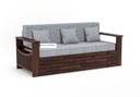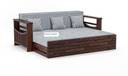 Douceur Furnitures Solid Sheesham Wood For Living Room / Hotel / Bed Room. 3 Seater Double Solid Wood Pull Out Sofa Cum Bed (Finish Color - Walnut Finish With Lite Grey Cushion Delivery Condition - Pre-assembled)