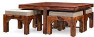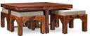Douceur Furnitures Solid Wood SHeesham Wood Coffee Table With 4 Stools For Living Room / Cafe Solid Wood Coffee Table (Finish Color - Honey Teak, Pre-assembled)