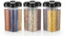 Food Storage Jar with 4 sections. Keep 4 types of food in the same jar without mixing. This food storage jar is made from non-BPA, non-toxic, food grade plastic. Easy to clean, freezer-safe, microwave-safe, oven-safe and dishwasher-safe BPA-free, Non-toxic plastic. Easy to clean. Freezer-safe, Microwave-safe and Dishwasher-safe. These cereal jars make your kitchen attractive. The lid is attractive and interesting thing about this cereal jar is, this gives your kitchen more fashionable look. Convenient food-storage container for kitchen, which is high-quality plastic. These cereal jars preserve the cereals in kitchen, and they are dishwasher safe. This container occupies very less space in your kitchen. Easy to dose flour, sugar, rice, noodles or cereals, you can store 4 different type of nuts in one box.