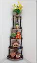 • Wooden Corner , Multipurpose Living Room Corner Bedroom Corner, Wall Corner Stand, Floor Standing, Brown Finish 5 Shelves Wooden corner