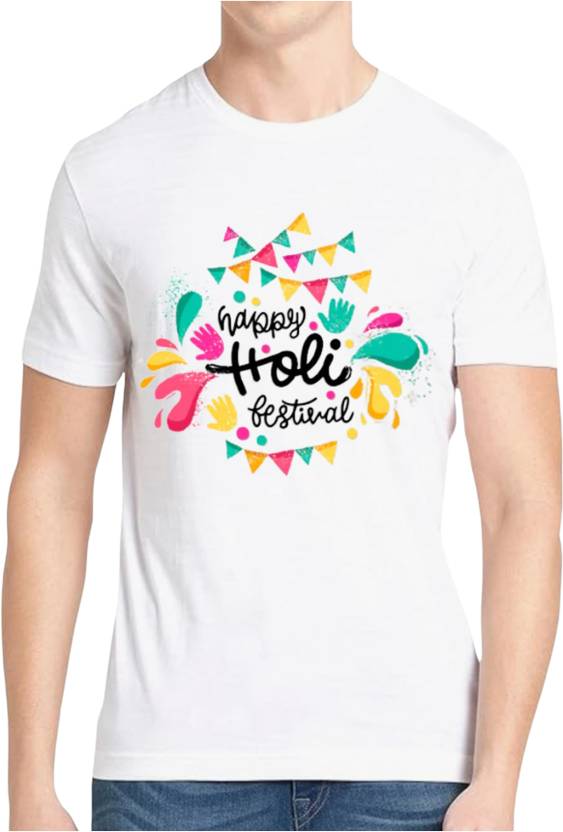 Men Printed, Typography Round Neck Polycotton White T-Shirt