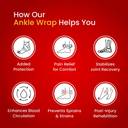 Dr. Ortho Ankle Wrap Neoprene assists in providing essential support and comfort for individuals recovering from ankle injuries or needing extra stability during physical activities. Neoprene fabric's compression helps relieve swelling and provides comfort to the injury. Nylon, Spandex, Cotton, & Rubber collectively offer the right amount of breathability and durability. The adjustable straps and secure Velcro fixation ensure personalized comfort.