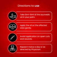 Its non-greasy texture ensures that it doesn't leave any residue behind, making it suitable for use throughout the day. To soothe the affected area, gently massage 5 to 10 ml of the oil into your skin. For best results, repeat this process twice a day, once in the morning and once in the evening or as directed by the physician.