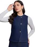 DRAPE AND DAZZLE Party Solid Women Dark Blue Top