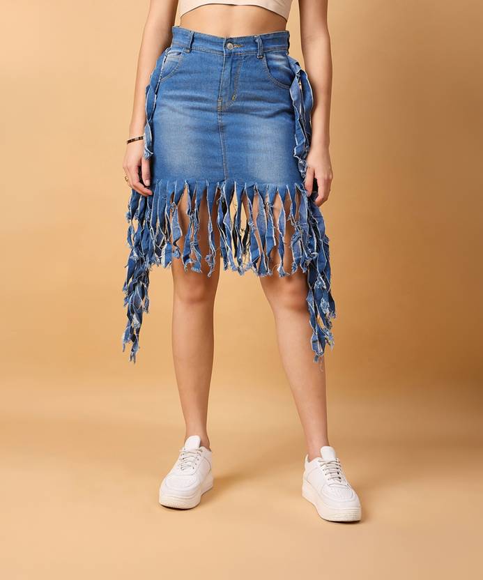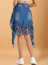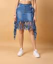 Introducing our effortlessly Denim skirt adorned with playful fringes and convenient pockets. Crafted from high-quality denim fabric, this skirt combines comfort with style effortlessly. The fringes add a touch of bohemian flare, giving your outfit a carefree and dynamic vibe. Meanwhile, the strategically placed pockets offer functionality without compromising on aesthetics, allowing you to carry essentials with ease while maintaining a sleek silhouette. this denim skirt with fringes and pockets is a versatile wardrobe staple that exudes effortless charm and practicality.