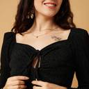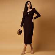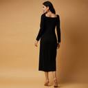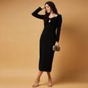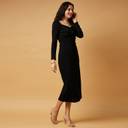 Women Black Solid Shimmer Bodycon Fullsleeve Dress