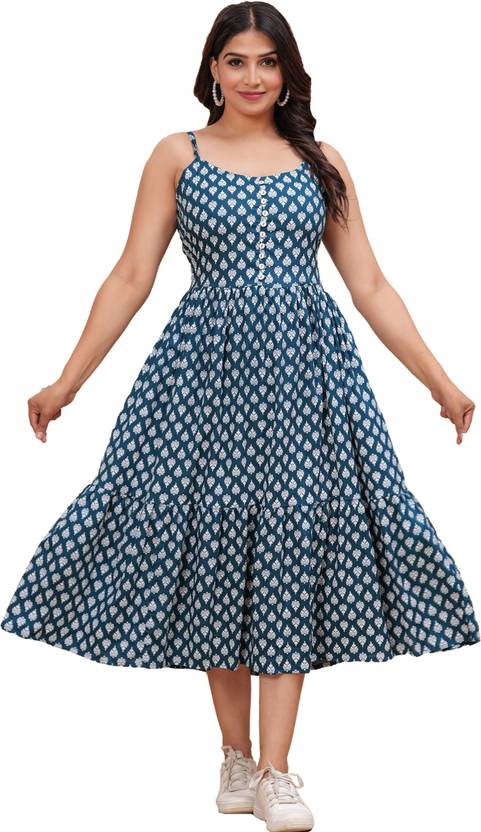 Ethnic motifs printed, Front buttons, Long flared, High quality of fabric, Light weight fabric