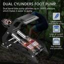 Material: Aluminum Tube, Iron Base Frame,Package Included: 1 x Floor Air Pump ,1 x Nozzle adapter,1 x Sports needle Ergonomically Double Cylinder Design, Faster Pumping Than Normal Single Barrel Pump,double cylinder design, more air pressure, less leaking, easy and effortless when pumping Foot double cylinder High pressure speed rushing, up to 160PSI, accurate to below 150PSI. 2 Universal Presta & Schrader Valves, US and French mouth dual-use, No conversion needs; 3 Different Types of Nozzles to meet all your needs; Made of Quality Heavy Metal, which makes it sturdy and durable; Non-slip Pedal, Just step on the lever of the floor pump to start the flow of air, features large foot pedal with non-slip mat; Safety Slide-lock, Designed with built-in safety pedal slide-lock, to keep the body steady and wouldn’t pop out in suddenly when folded. Foldable and Compact Design, Easy Storage and Save Space; Widely Application: For car/SUV/RV tires, bikes/bicycle tires, sports equipment, inflatable toys etc. Drasert Air pump Material: Aluminum barrel & Iron base frame. Easy To Cary : The rugged alloy bracket, piston, rubber air tube and extra needles will give you a variety of experiences. Foldable, space-saving, compact, can be stored at home or easily placed in the car, especially in your travel, taking up little space. How To Make The Nozzle Work :1. Unlock (press the button on both sides of the air pump at the same time as indicated) 2. Screw the nozzle onto the valve (do not deflate when tightening) 3. Lock and start to inflate (use your foot to easily press, quickly inflate. Specifications