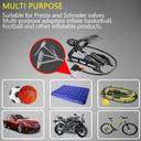 Featuring a multifunctional design, this air pump is suitable for Presta and Schrader valves, catering to a wide range of tire types. Additionally, its multi-purpose adaptors enable the inflation of basketballs, footballs, and other inflatable products, adding to its flexibility and utility.