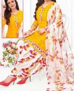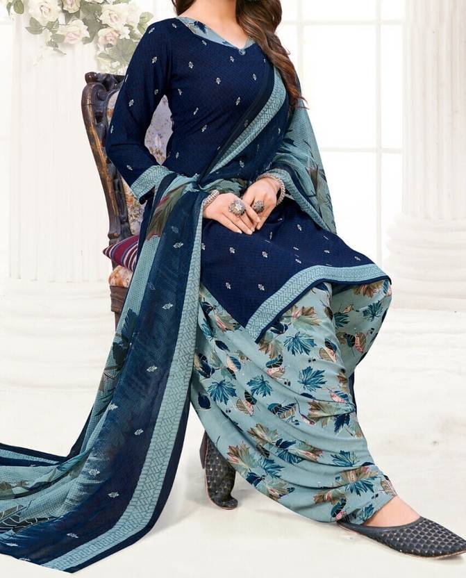 These dress material made of crepe fabric. These casual suits are beautifully adorned with beautiful prints as shown, comes along with unstitched crepe bottom and chiffon dupatta which makes it appear more adorning. Grab these dress materials and get it stitched in to patiala, salwar or churidar suit according to your fit and comfort. Ideal for office, casual outing and social get together. Team these with a pair of matching earrings and heels for the perfect look. Note:- The actual product may differ slightly in color and design from the one illustrated in the images when compared with computer or mobile screen.