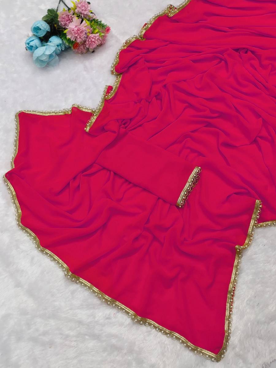 drashti trading Solid/Plain Bollywood Georgette Saree (Pink)