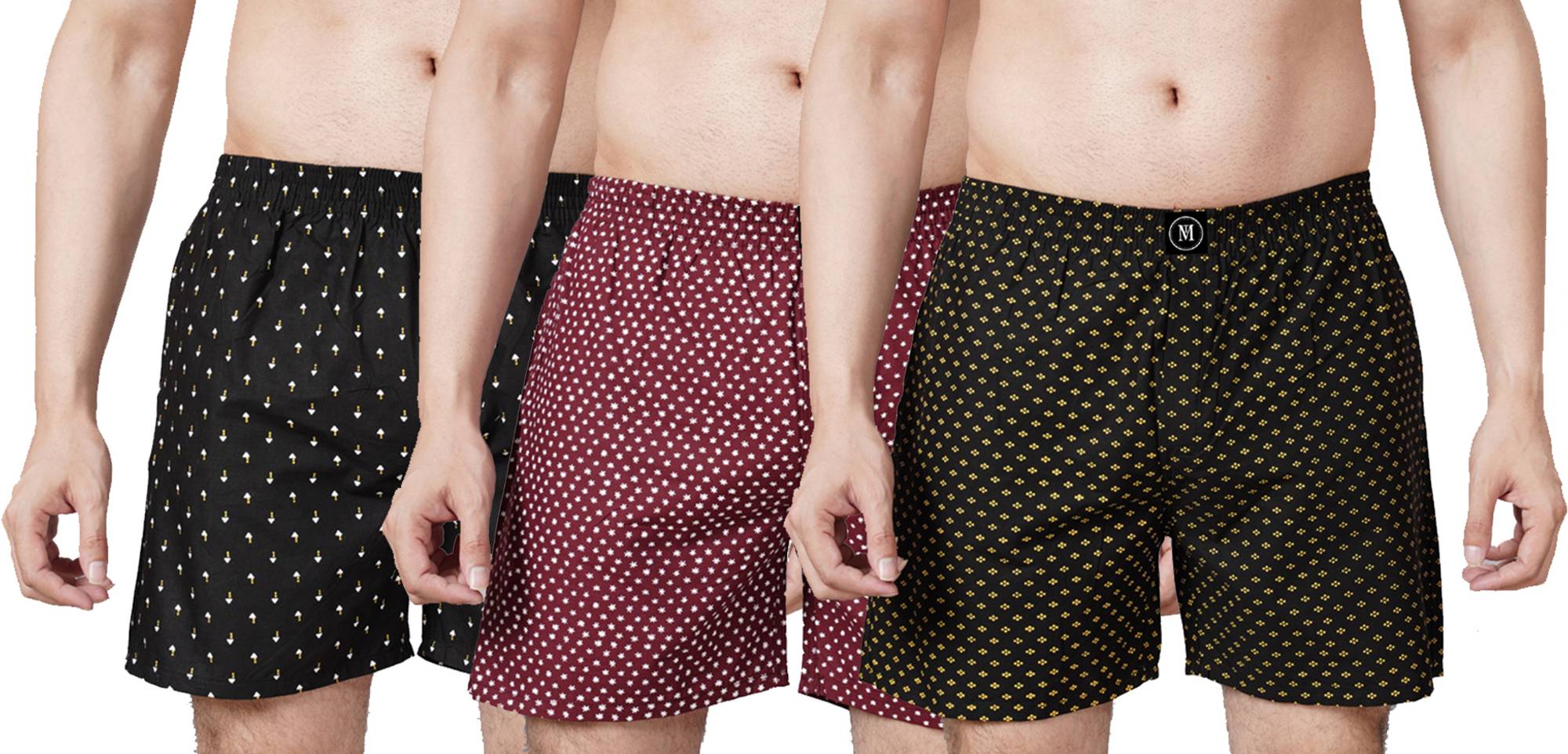 This product comes in a variety of Prints / Checks / Colors. The pattern shown here is for representation purpose only. The product delivered may not be of the same Material Composition: 100% Cotton Fit Type: Regular Fit Care Instruction: Machine wash warm, wash dark colors separately, do not bleach, tumble dry low, warm iron, do not iron on print Number of Items: 1;Pattern: Printed, Polka Dots Closure: Elasticated waistband Attractive colors and designs; Pack comes in assorted colors Made in India Age Range Description: Adult Big Size Boxer Available And Multiple Quantity Available