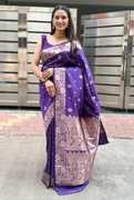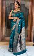 Made from luxurious pure silk, this saree offers a soft, rich drape and a natural sheen that reflects sophistication.Featuring an all-over self-design woven pattern using traditional Banarasi jacquard weaving techniques, it radiates opulence without being overpowering.Intricately jacquard woven, ensuring durability and elaborate motifs that define classic Banarasi artistry.Accentuated with a contrast or matching zari-woven border and pallu, adding grandeur to the overall look.Standard saree length of around 5.5 meters, with an additional 0.8-meter unstitched blouse piece.