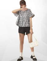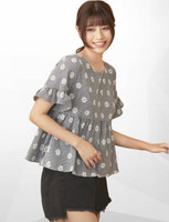 Boasting a regular peplum silhouette, this top provides a balanced blend of structure and ease. The short length and regular fit create a relaxed shape, which may offer comfort throughout the day. Courtesy of the round neckline, this brings a classic touch, while the short regular sleeves enhance the airy feel. The ruffled detailing on the sleeves introduces a subtle textured accent that refines the overall aesthetic.