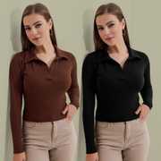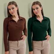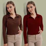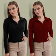 Casual Polyester Blend Long Sleeves And Collared Neck Stylish Pack Of 2 Tops