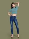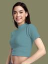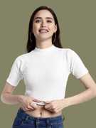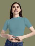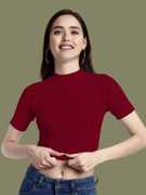 Casual Polyester Blend Round Neck Short Sleeves Stylish Crop Top For Womens 15"Inches