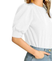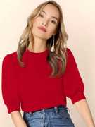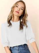 Sporting an alluring and sophisticated design, this regular top introduces a distinctive flair through its puffed sleeves and round neckline. And, the puffed sleeves contribute a touch of drama to your outfit, crafting an elegant outline that captures attention. Besides, the round neckline radiates contemporary charm.