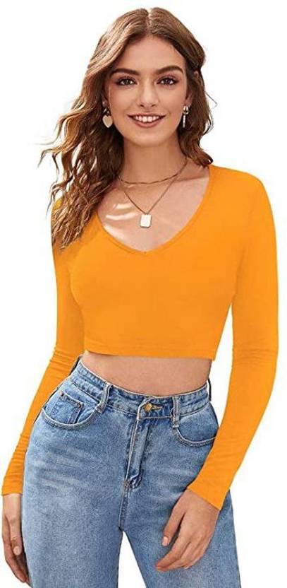 Dream Beauty Fashion Casual Solid Women Yellow Top