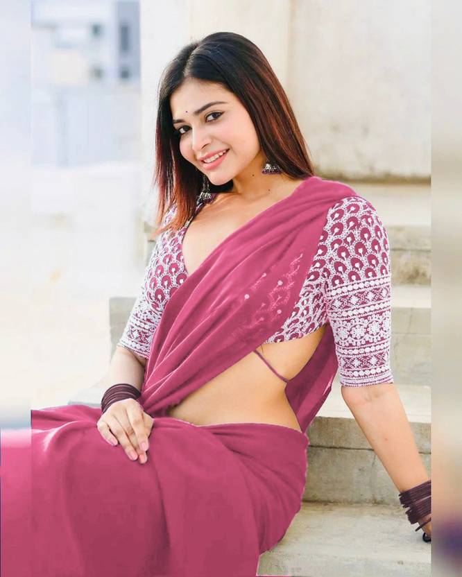 Dream Style Embroidered, Solid/Plain Bollywood Georgette Saree (Pink)