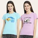 DreamBe Pack of 2 Women Printed Round Neck Pure Cotton Multicolor T-Shirt