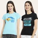 DreamBe Pack of 2 Women Printed Round Neck Pure Cotton Multicolor T-Shirt