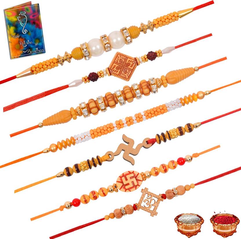 Colorful Rakhi Pearl Rakhi Set Of 7 Rakhi Set For Brother With Greeting Card Roli Chawal