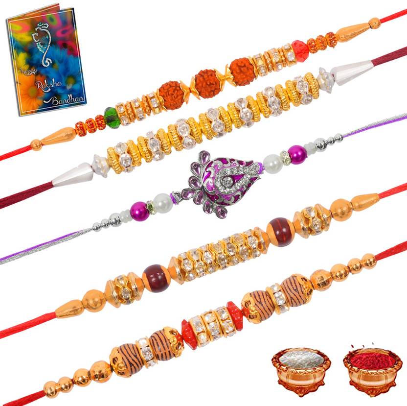 Hathfull Rakhi Dora Rakhi Set Of 5 Rakhi Set For Brother With Greeting Card Roli Chawal
