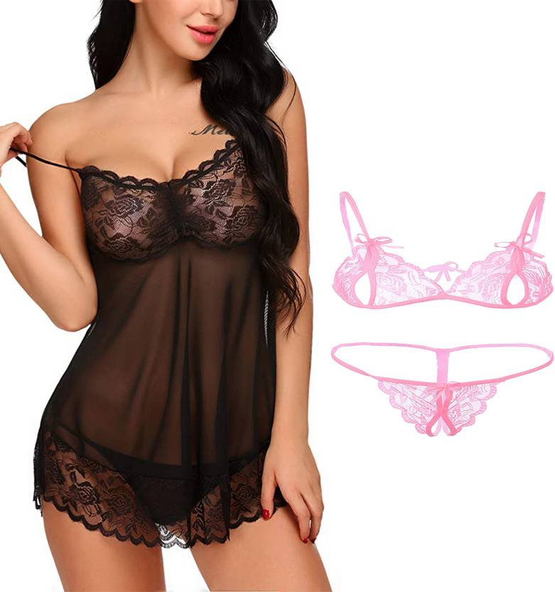 Lace babydoll lingerie is made of 95% Polyester, 5% Acrylic. Skin friendly,Super soft and comfortable to wear, can also be used as a daily sexy sleepwear.