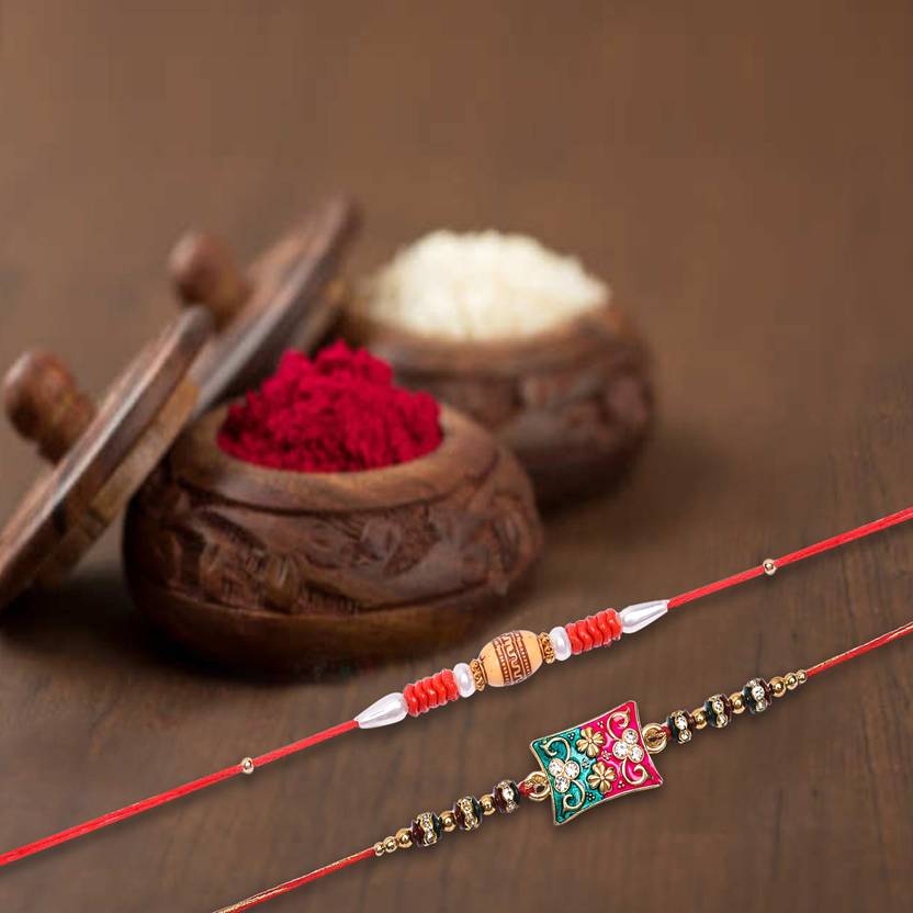 Rakhi Traditional Rakshabandhan Gift to Brothers from Beloved Sisters Rakshabandhan or Rakhi is a festival celebrating and honoring sibling love. It is love at its purest & deepest point and is portrayed in the form of the sister reminding the brother of the undying bond between them by tying a holy thread and true to his nature the brother reiterates his pledge to care for his sister in body mind and spirit. Honoring this ancient festival of morals and self-sacrificing love, we brings home-spun rakhis prepared in the time honored tradition and with same love & care that equates sisterly love. Respecting the values that Rakhi represents we bring you rakhis made with auspicious material like moli and woven with kundan, zardosi etc
