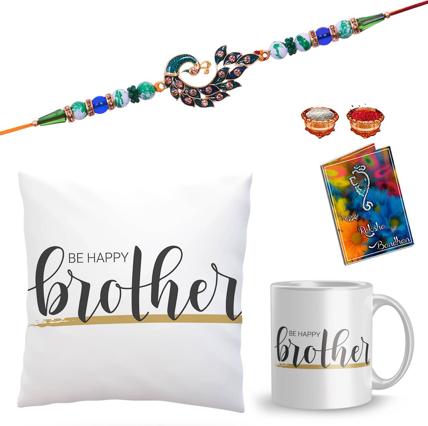 Rakhi, Mug, Cushion, Chawal Roli Pack, Greeting Card