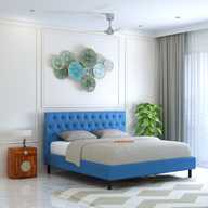 Dreamydesks Velvo Plywood Upholstered Bed with Box Storage & Tufted Headboard| Double Bed Engineered Wood Queen Bed (Finish Color - Velvo_BL, Delivery Condition - Knock Down)