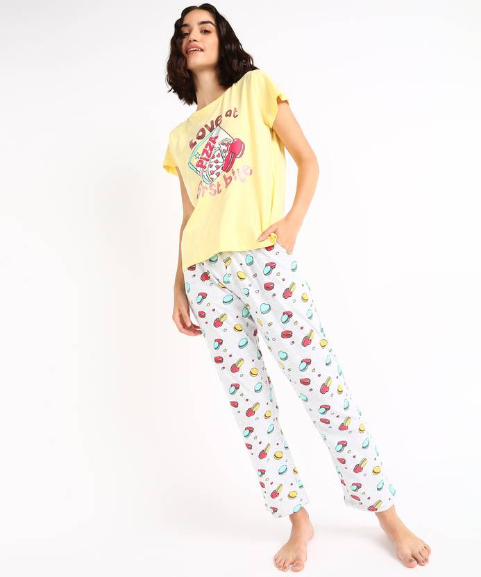 Dreamz by Pantaloons Women Printed Yellow Top & Pyjama Set