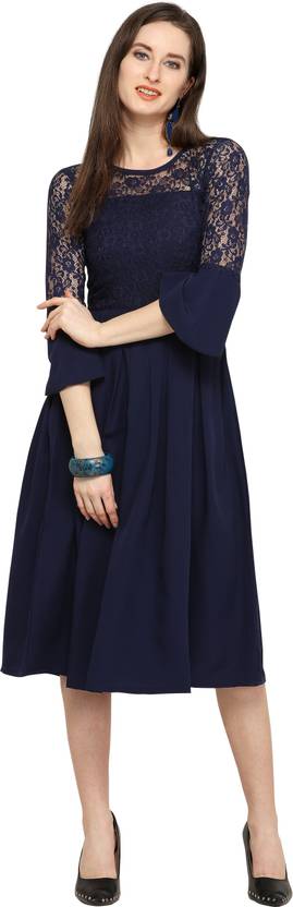 Dress CodeĀ Women Fit and Flare Dark Blue Below Knee Dress