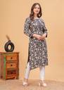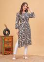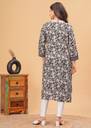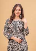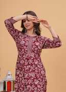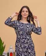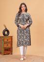 The kurta features a charming printed floral design that adds a touch of elegance and femininity. The floral patterns are delicately printed onto the fabric, creating a visually appealing motif that enhances the kurta's aesthetic appeal. The prints are thoughtfully placed to complement the kurta's silhouette, adding a cheerful and vibrant vibe to your attire.