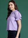 Casual Puff Sleeves Self Design Women Purple Top