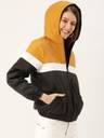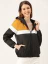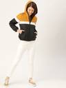 Black and Mustard yellow colour blocked bomber jacket, has a hooded, 2 pockets, zip closure, long sleeves, straight hem, and polyester lining. Stay cosy and warm with this trendsetting black jacket. When you're going to an art gallery, wear this piece with slick black jeans and a fashionable top.