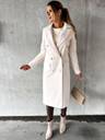 White solid regular-fit coat, has a notched lapel collar, double-breasted with button closure, long sleeves, straight hem, and 2 pockets.