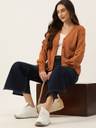 Dressberry Solid V Neck Casual Women Brown Sweater