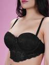 Experience ultimate comfort and confidence with this beautifully crafted lace demi-cup bra. The seamless, padded cups provide a natural lift and smooth appearance under clothing, while the underwire ensures essential support. The intricate lace detailing adds a touch of sophistication, and the detachable straps offer flexibility for various necklines and styles. This bra is perfect for everyday wear or special occasions.