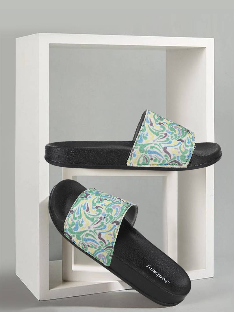 Dressberry Women Slides (Black, Green , 5)