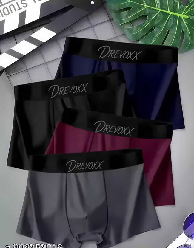 These DREVOXX men's trunks are designed for comfort and everyday wear. They feature a soft, stretchable fabric and a distinctive black elastic waistband with the brand name. Available in solid colors such as maroon, black, grey, and teal, these trunks provide a snug yet comfortable fit. They are compatible with all types of outer clothing, including jeans, trousers, shorts, and athletic wear.calvin klein underwear