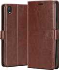 Driden Back Cover for Vivo Y1S - Inbuilt Stand & Card Pockets | Hand Stitched | Wallet Flip Case (Brown, Camera Bump Protector, Pack of: 1)