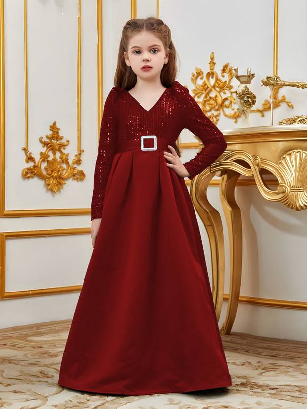 Driza Ecommerce Girls Maxi/Full Length Festive/Wedding Dress (Maroon, Full Sleeve)