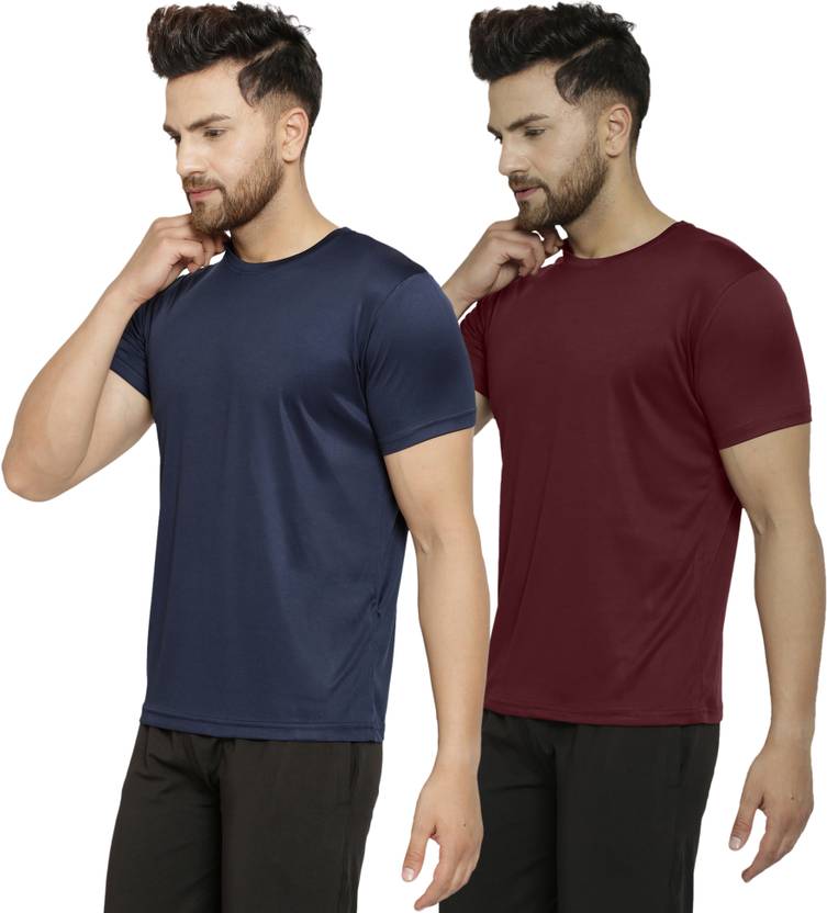 DRIZONE Pack of 2 Men Solid Round Neck Polyester Navy Blue, White T-Shirt