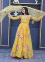 FROM DRJ – Bright Yellow Floral Anarkali Gown with Dupatta