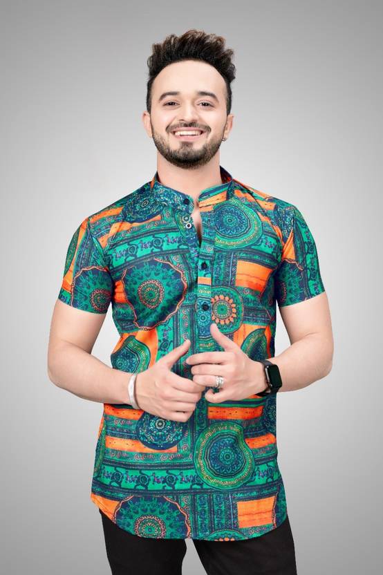 DRSE ENTERPRISE NEW LUNCHING Times Mens Digital Print Fancy Half Sleeve Shirt For Men. Material: 2Way Lycra. Fancy Casual Shirt