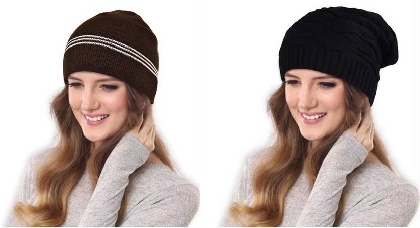 DRUNKEN Cap For Men Women Winter Beanie Woolen Stylish Caps For Man Black And Brown Free Size Combo of 2 Beanie (Pack of 2)
