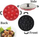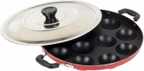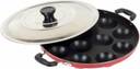 Drunna 12 Cavity Grill Appam Patra 2 Side Handle with Stainless Steel Lid | Appam Maker Taper Fry Pan 22 cm diameter with Lid 0.25 L capacity (Aluminium, Non-stick)